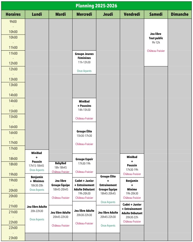 TARIFS 2025-2026 : Adulte : 183€ ; Jeune : 183€ ; Baby Bad (3 à 5 ans) : 99€